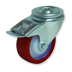 Aplicaciones de este rotante: Industriales en general, en el traslado manual de cargas ligeras y medianas y en los casos en que se requiera un desplazamiento silencioso, absorción de golpes y vibraciones, máxima protección de los suelos y del equipo.