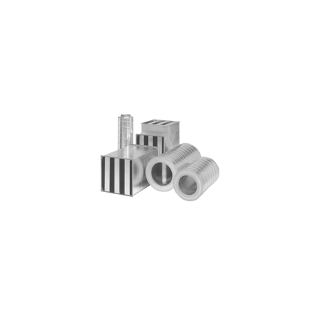 Codo rectangular con tolva circular de chapa galvanizada o acero inoxidable. Medidas disponibles para conductos desde 150 a 560 mm aunque puede consultar otras medidas para fabricación a medida y salidas reducidas si...