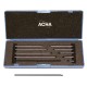 Conjunto de extensiones en acero inoxidable diseñadas para relojes comparadores con rosca M 2,5 mm en la punta y diámetro de 4,5 mm. Estas alargaderas permiten alcanzar zonas de acceso difícil manteniendo la precisión de la medición.